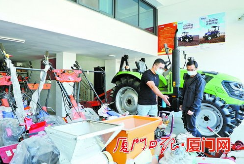 昨日上午,在翔安區的廈門祥力農業機械有限公司,負責人陳民用正在向農民介紹田園管理機、微耕機等農機,“當前是秋冬種的農忙時期,新的農機購置補貼方案出臺后,補貼的農機具種類更多,辦理時限更短,大大方便了合作社和農民。”