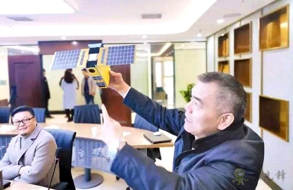 總工程師汪澤民拿著衛星模型,為記者講解“國智恒好年景中原金水一號”原理和運行情況。