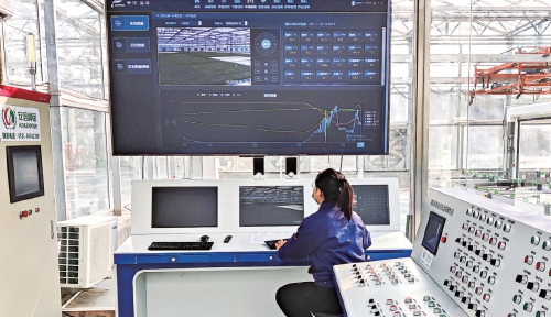 在凱盛浩豐(萊西)智慧農業產業園的一期溫室里,溫室頂部覆蓋的是超白減反無影玻璃,透光率能達到91.5%,保證作物充分吸收自然光進行光合作用。凱盛浩豐農業集團有限公司董事長馬鐵民介紹,公司主要生產歐洲同樣質量標準的番茄產品,與傳統溫室相比,智慧玻璃溫室產量高達普通溫室的6-8倍,具有高質量、高產量、高效率的優勢。